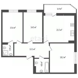 Общая площадь 89,9 кв м. Продуманная планировка: две спальни 14,3 кв.вм, 18,2 кв.м. и мастер-спальня 15,6 кв. м. со своим санузлом с душевой, а также отдельный санузел с ванной. Большая светлая кухня-гостиная 21,5 кв.м. с выходом на балкон - это идеальное пространство для встреч с друзьями и семейных вечеров.