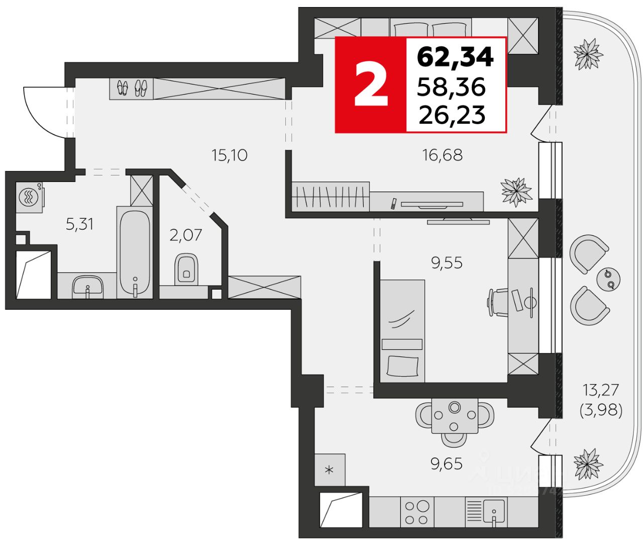 Продаётся 2-комнатная квартира в сданном доме (Воровского, 53), срок сдачи: IV-кв. 2025, общей площадью 62.34 кв.м., на 4 этаже. Жилой комплекс В53 расположен в активно развивающемся районе. В новых домах представлены удобные и продуманные планировки - от уютных компактных студий до просторных и светлых трехкомнатных квартир.