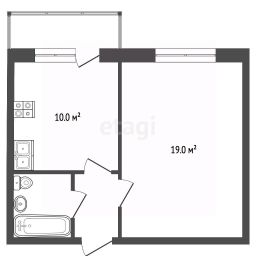 Планировка отличается рациональностью: изолированная комната площадью 17 кв. метров, отдельная кухня в 10 кв. метров, просторная прихожая и совмещённый санузел с ванной .