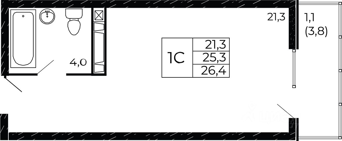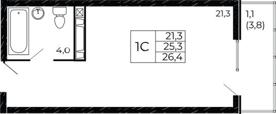 Общая площадь26,47 м²