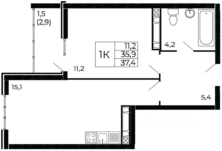 Жилая площадь11,2 м²