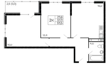 Общая площадь59,5 м²