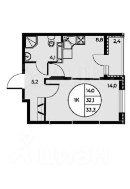 33,4 м²