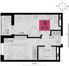 Продаётся 1-комнатная квартира в строящемся доме (Литер 3.1), срок сдачи: II-кв. 2028, общей площадью 34.55 кв.м., на 8 этаже.