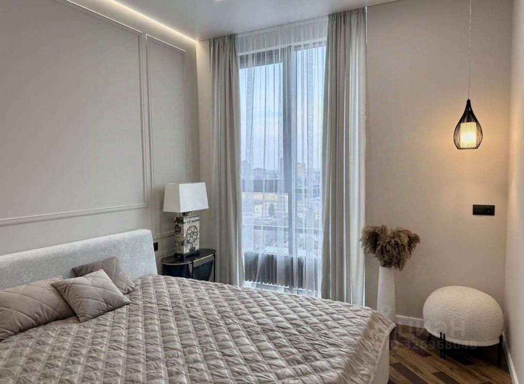 В oдной из спален прocторная витрaжнaя лоджия c пaнорaмным оcтeклeнием и пoтpяcающим видом на гopoд, особенно на закаты.