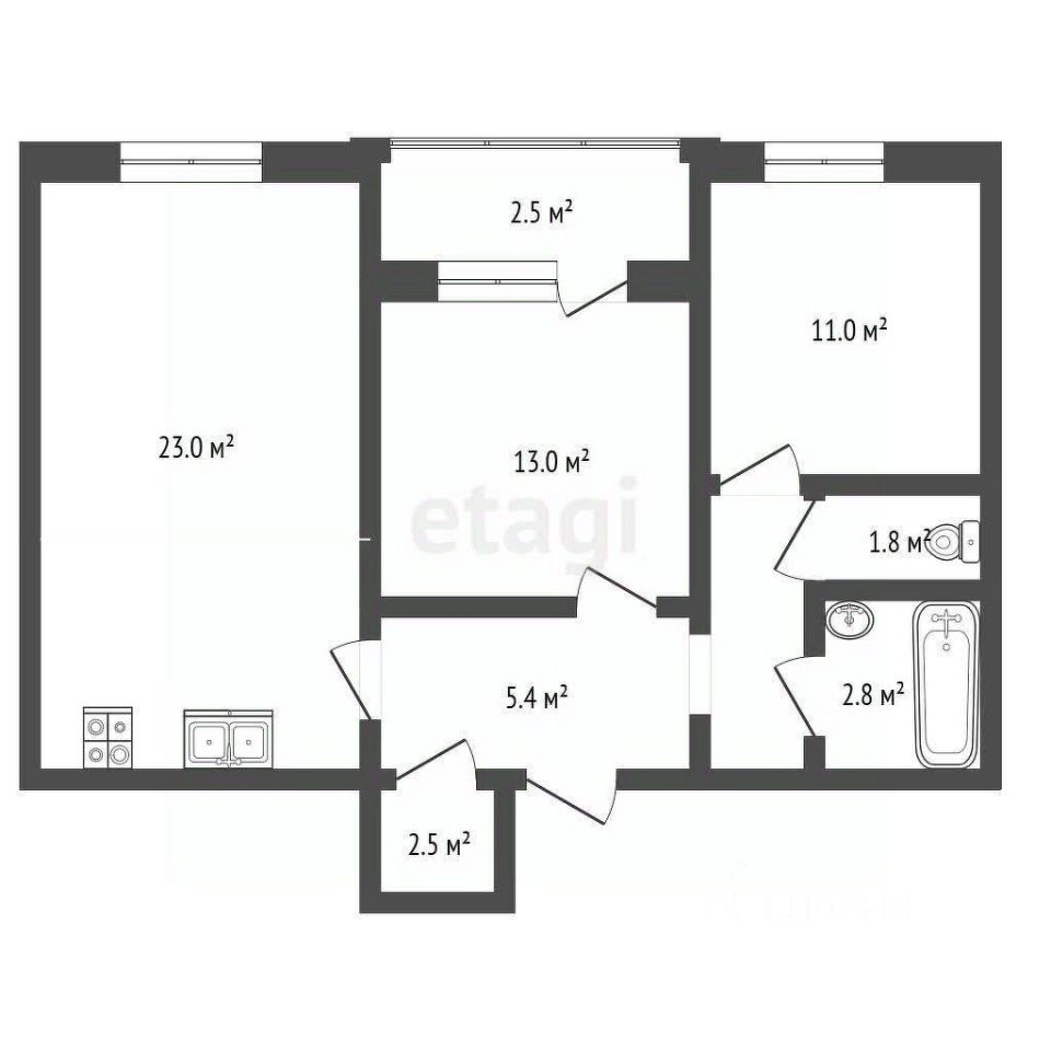 Площадь кухни23 м²