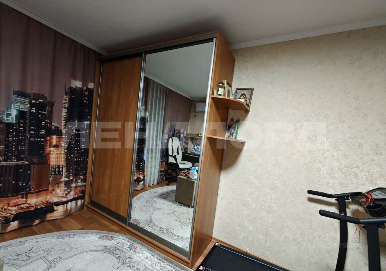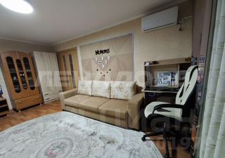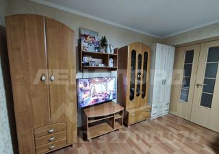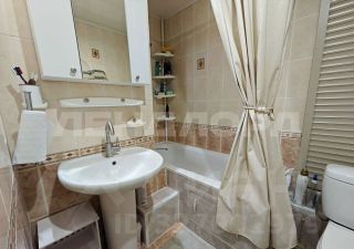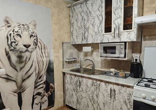 В комнате установлен вместительный шкаф-купе и удобный диван. Санузел совмещенный, оформлен плиткой, оснащён ванной и стиральной машиной. На кухне есть б/у гарнитур, небольшой диван, стол и 4 стула.