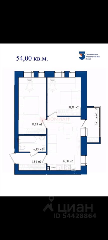 Арт. 129846926 Продаётся 2-комнатная квартира 54 м²