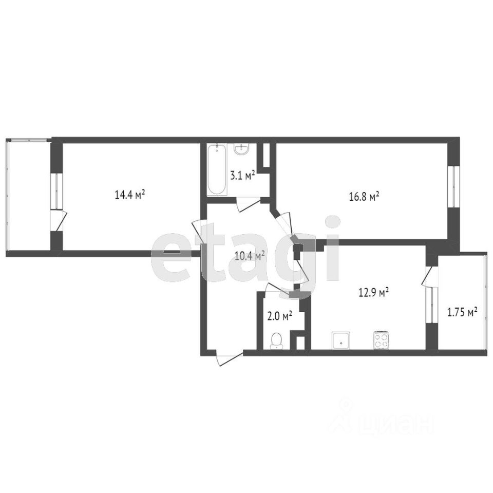 Продается 2-комн. квартира, 58,4 м²