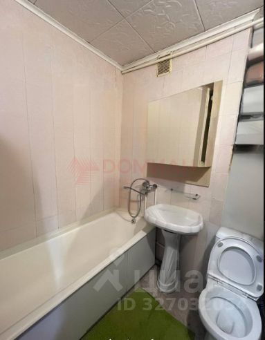 Санузел совмещённый, отделан плиткой, установлена ванна. На полу — качественный линолеум.