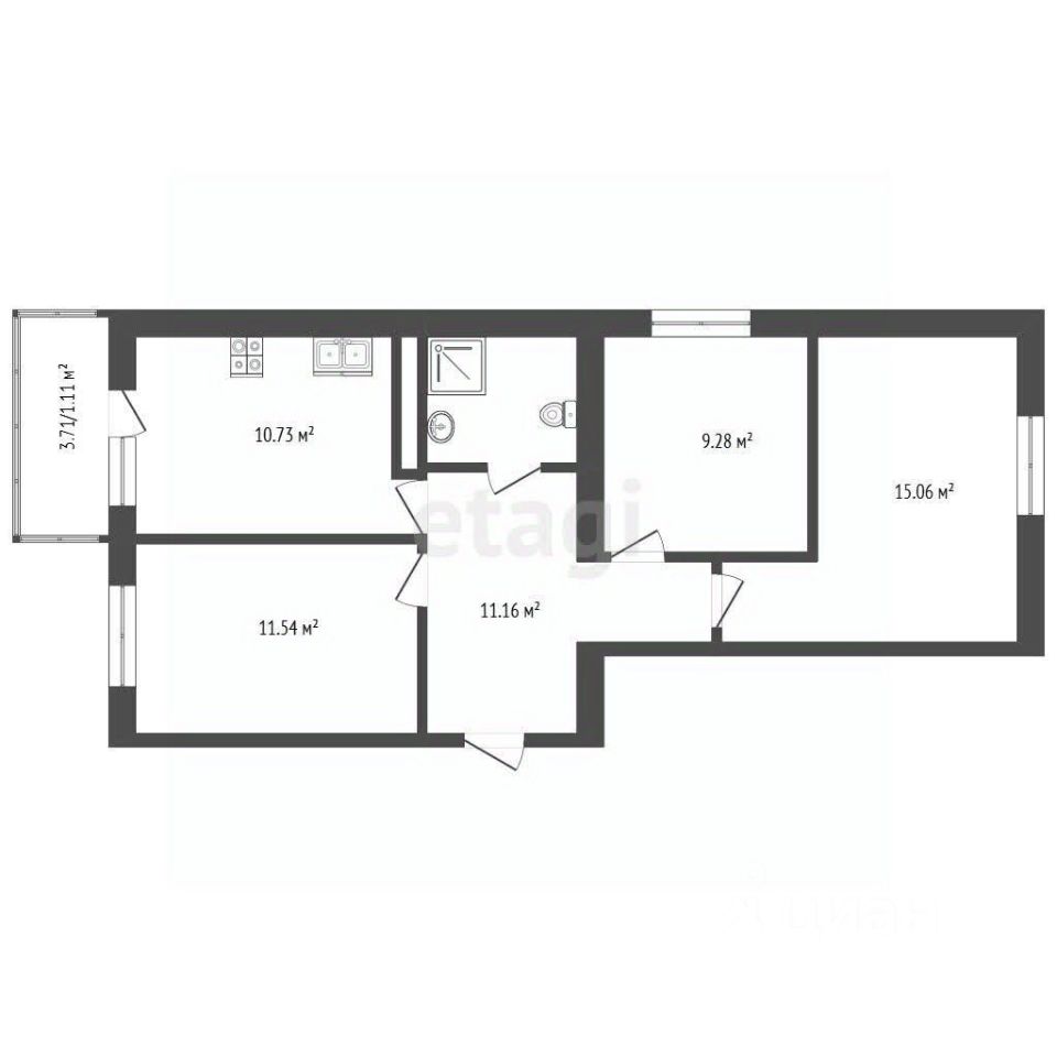 В продаже Евро3 квартира площадью 62.8 м2