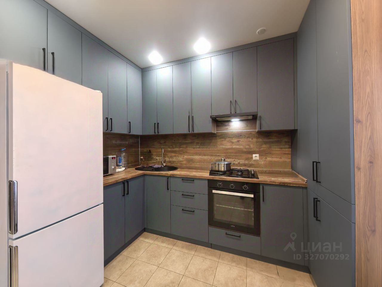 При входе в квартиру расположена гардеробная комната, отдельная спальня и большая кухня-гостиная.