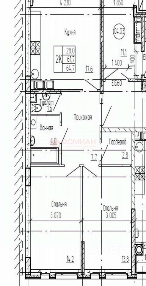 Высокие потолки 2.8 м и раздельный санузел для вашего удобства