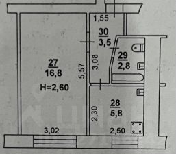 Удобная планировка, кухня и коридор совмещены, санузел и жилая комната изолированы.