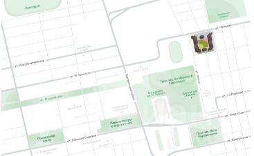 Занимает целый квартал в границах улиц Каяни, Налбандяна, Ченцова и 2-ой линии. Это уникальный для нашего города проект — и по расположению, и по классу жилья, и, конечно же, по архитектуре.