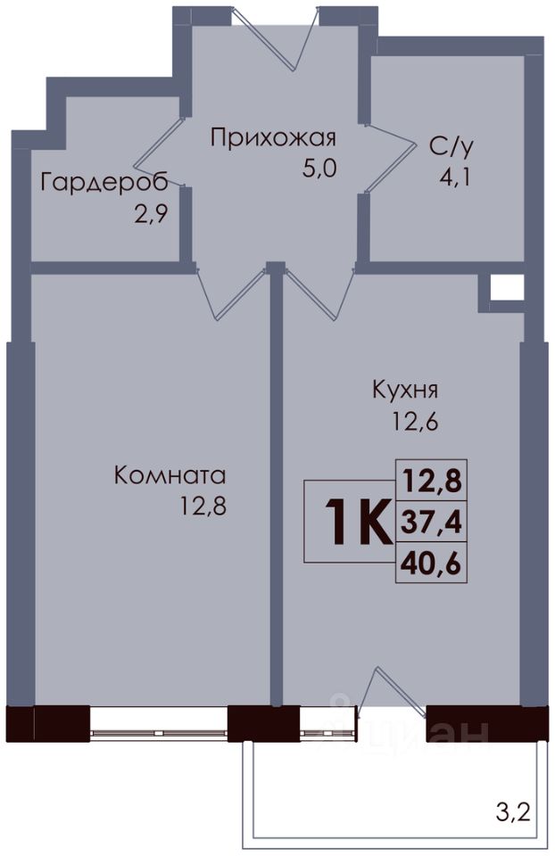 12,6 м²