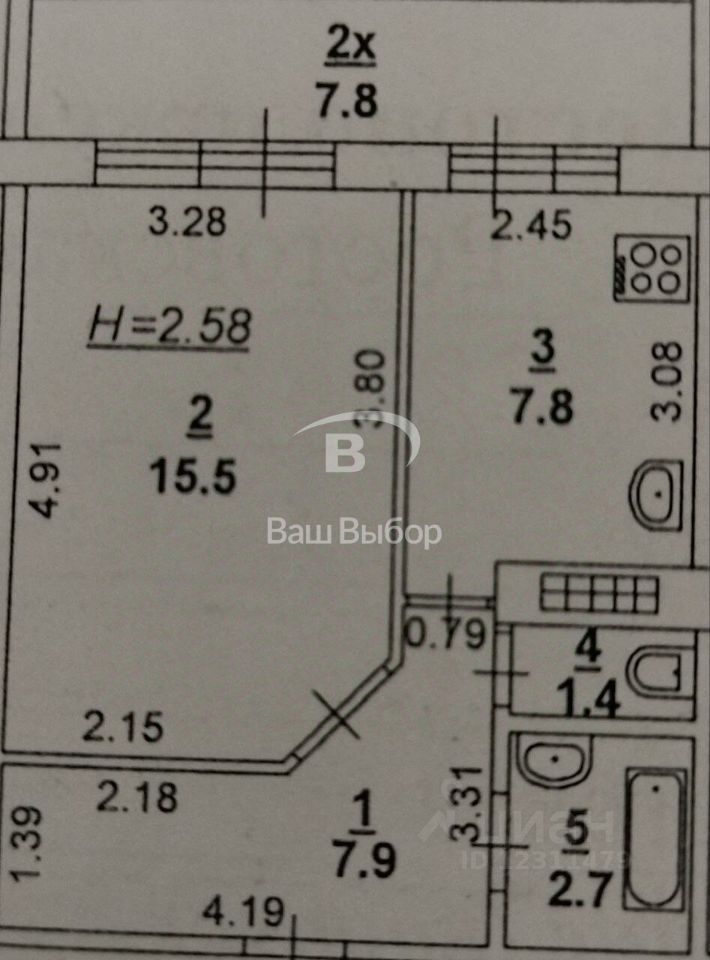 Квартира обладает жилой площадью 15,5 кв. м и кухней 7,8 кв. м. Высота потолков 2,7 м создаёт ощущение простора. Косметический ремонт позволяет сразу заселиться или адаптировать пространство под свой вкус. Окна выходят во двор, а наличие лоджии добавляет удобства.