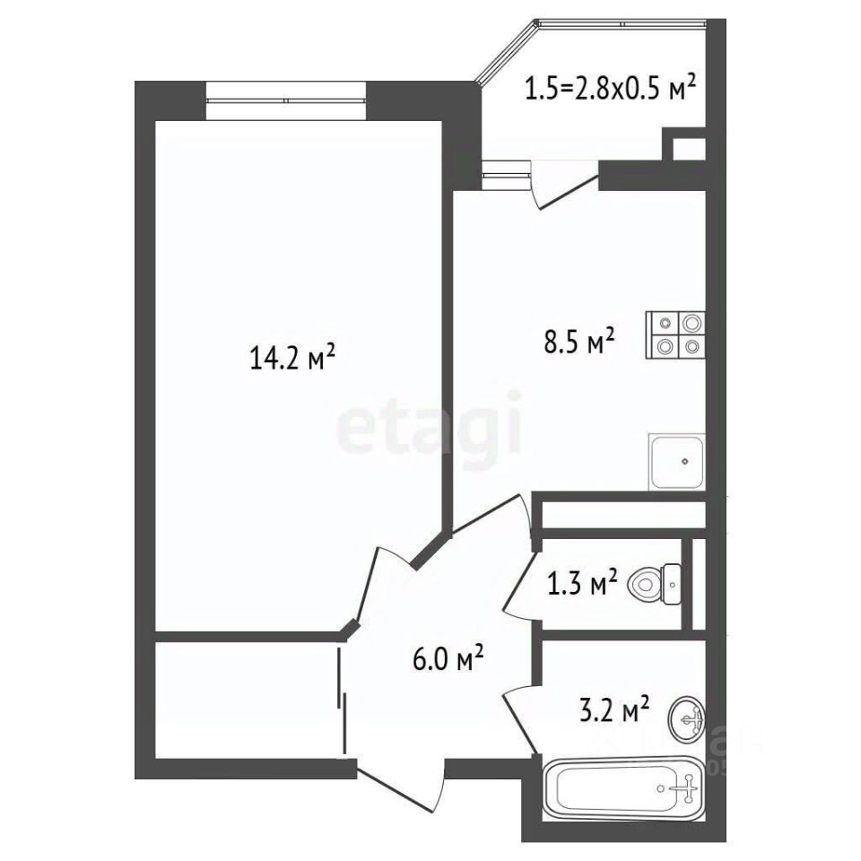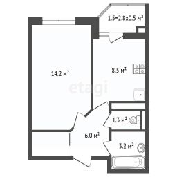 Общая площадь: 33,6 м²
