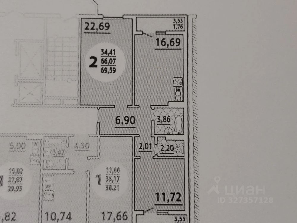 Предлагается к продаже уютная двухкомнатная квартира в современном доме, построенном в 2021 году. Просторная, с общей площадью 69.59 кв. м, она расположена на 5 этаже 17-этажного здания. Высокие потолки 2.75 метра создают ощущение еще большего простора. Жилая площадь составляет 34.41 кв. м, а кухня площадью 16.69 кв. м станет отличным местом для семейных ужинов и встреч с друзьями.