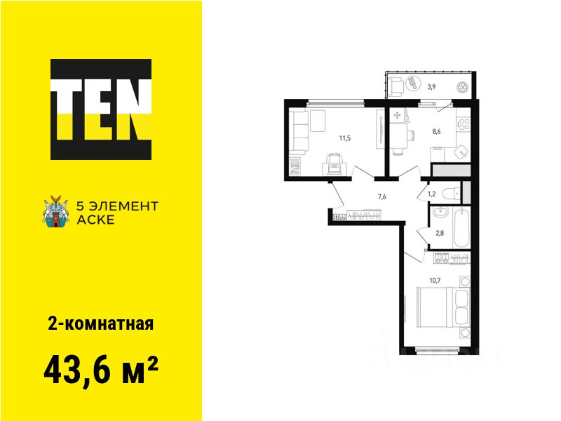 Общая площадь43,6 м²
