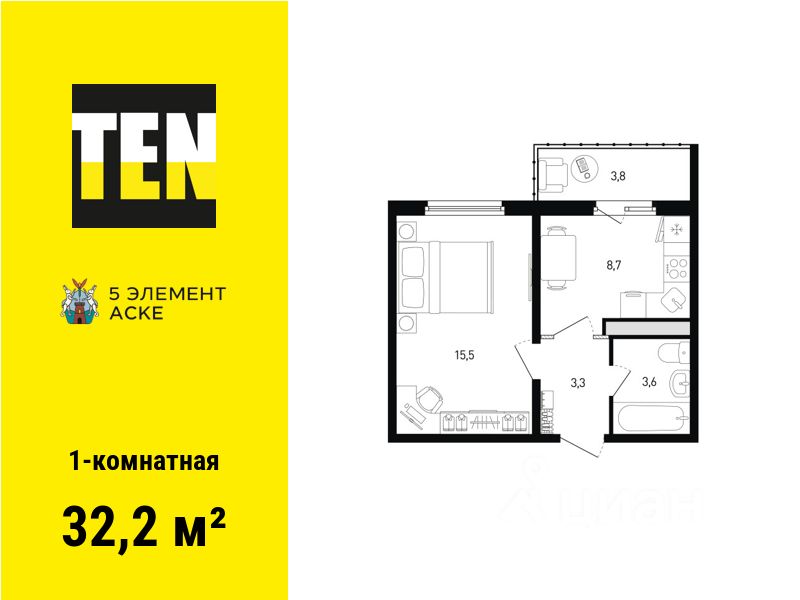 Общая площадь32,2 м²