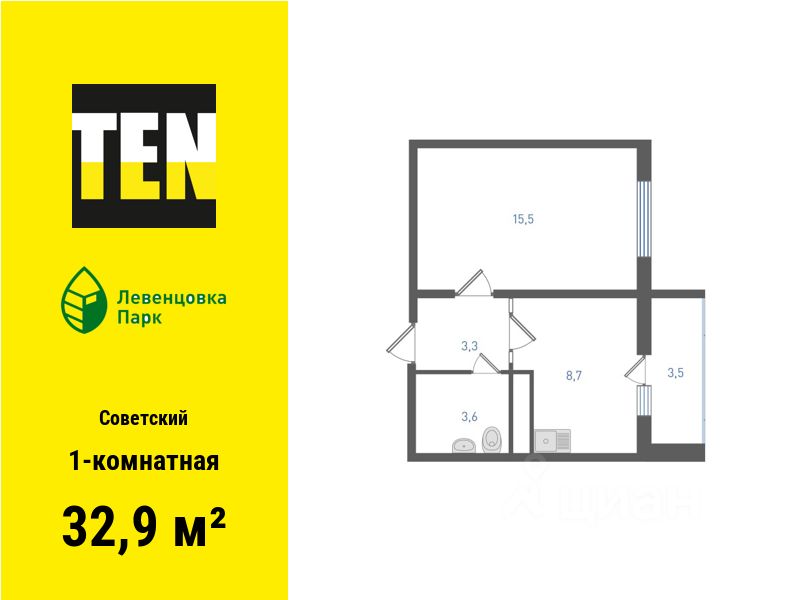 Общая площадь32,9 м²