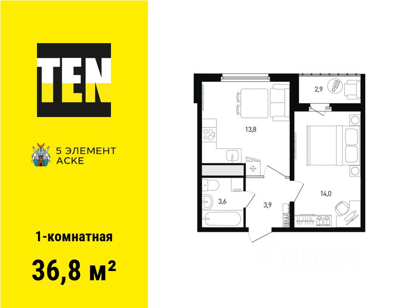Общая площадь36,8 м²