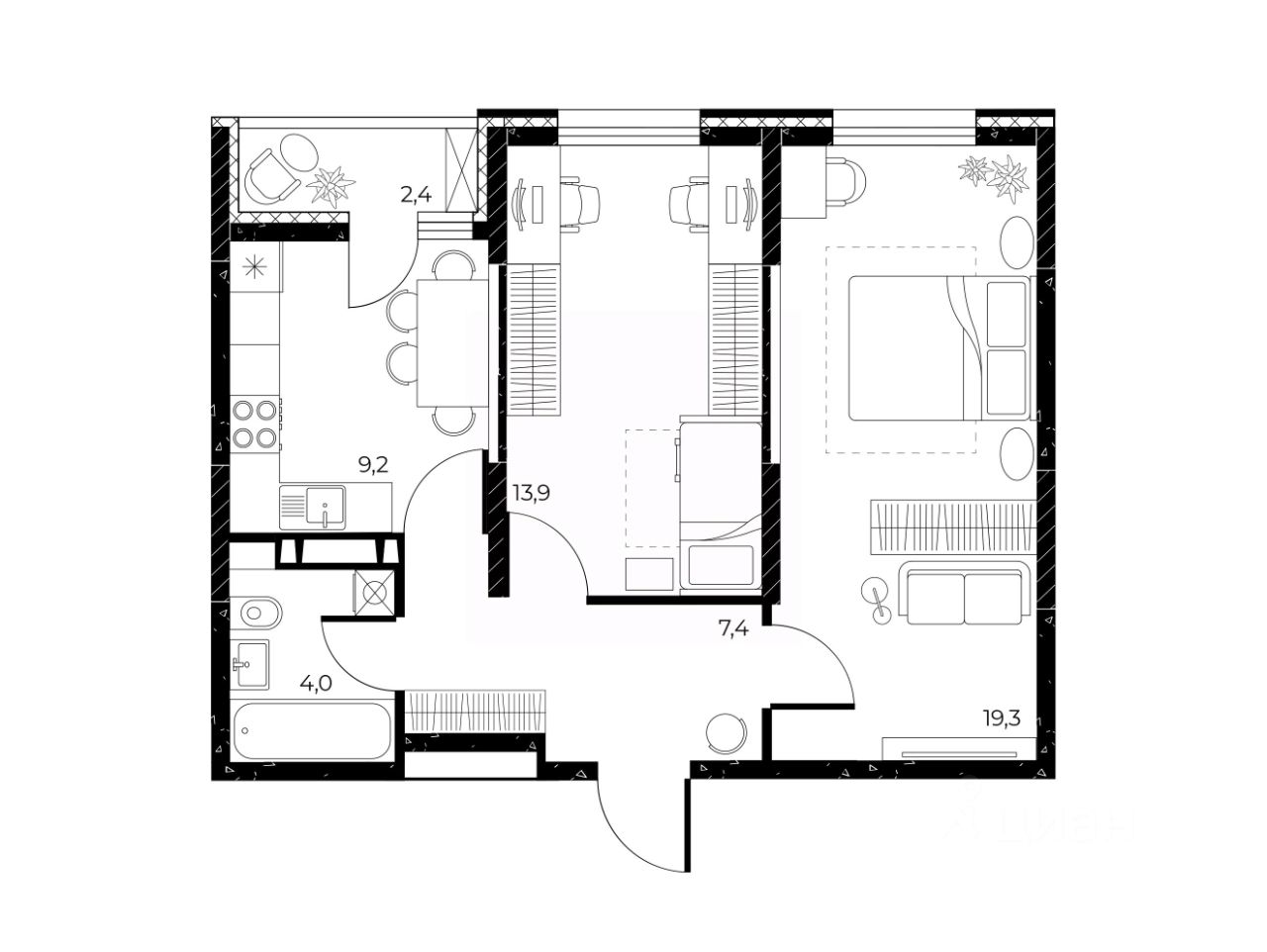 Общая площадь55 м²