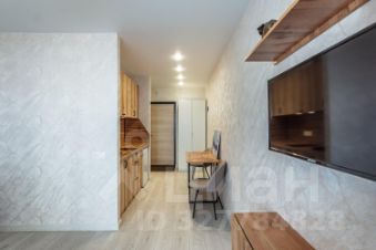 В квартире сделан дизайнерский ремонт, что придает интерьеру современный и стильный вид. Пространство организовано как студия, что создает ощущение свободы и легкости. В квартире есть совмещенный санузел и лоджия, с которой открывается вид на улицу. Современная мебель и техника подчеркивают высокие стандарты качества и удобства.