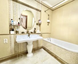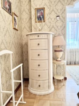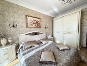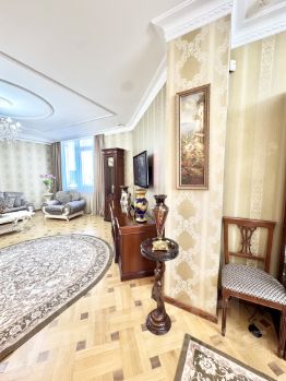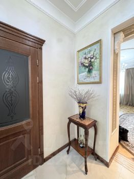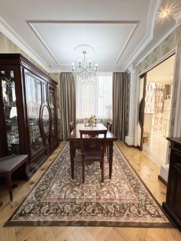 В квартире выполнен стильный дизайнерский ремонт с использованием европейских материалов, натуральный паркет, итальянская мебель, искусственный камень. Просторная кухня оборудована всем необходимым для комфортной готовки и семейных обедов. Два санузла, 2 большие гардеробные обеспечат вам комфорт для проживания!