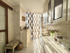 Продается просторная квартира с дизайнерским ремонтом в классическом итальянском звучании, расположенная на 7 этаже современного 23-этажного дома.