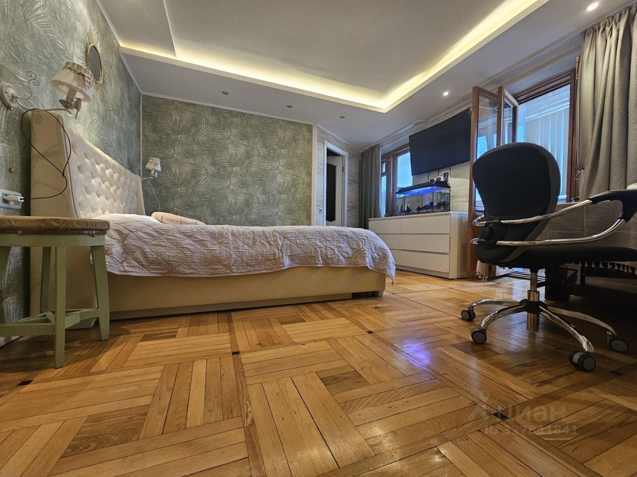 Две лоджии застеклены, балкон з/ст., тёплый водяной пол, гардеробная.