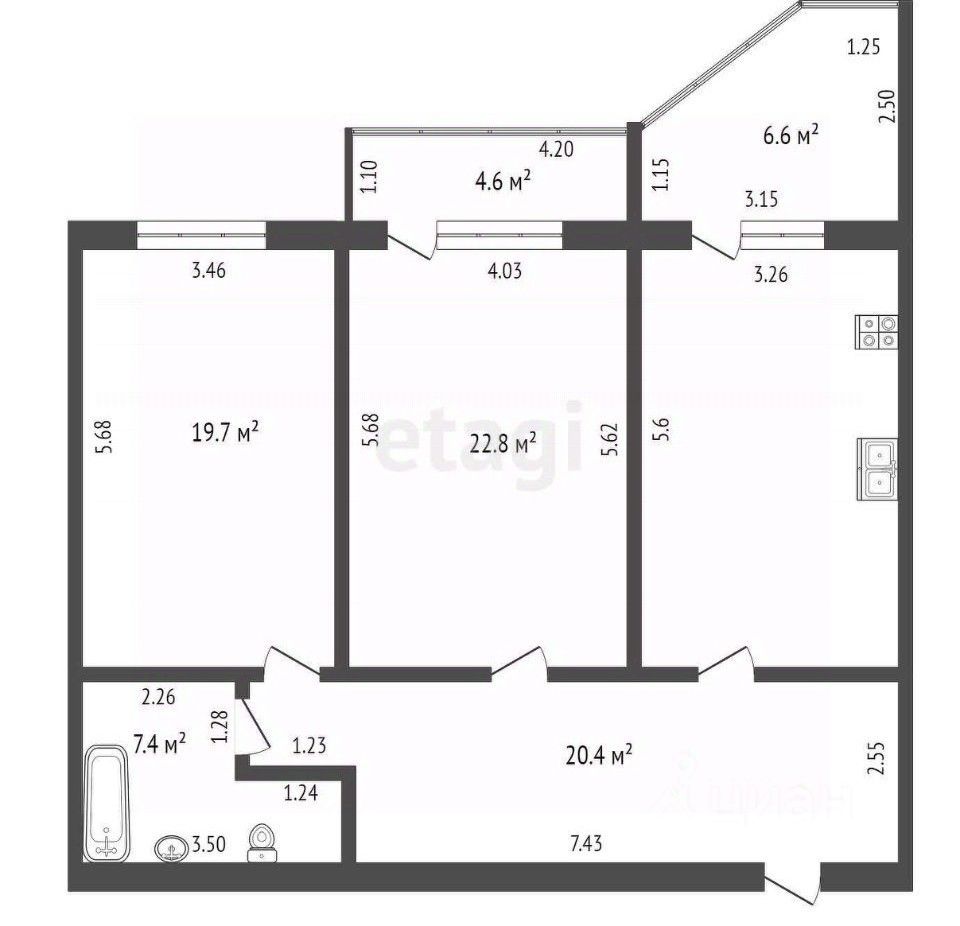 Особенность: Три лоджии — дополнительное пространство для отдыха или хранения.