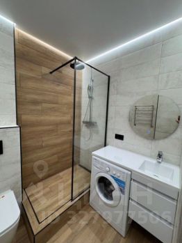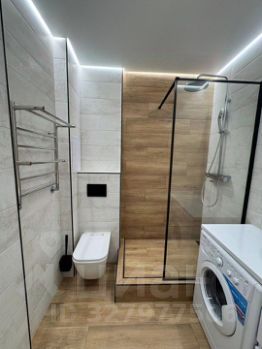 Сантехника: душевая кабина, унитаз с плавным опусканием крышки.
