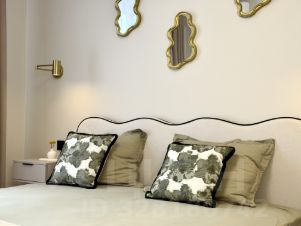 Здесь всё для здорового сна. Кровать Esther 180/200 с подъёмным механизмом — удобно убирать сезонное. Анатомический матрас Ormatek — спина скажет спасибо. Цветовая гамма спокойная, ничего не кричит. Фурнитура сатиновое золото — мягко, благородно, без вычурности.