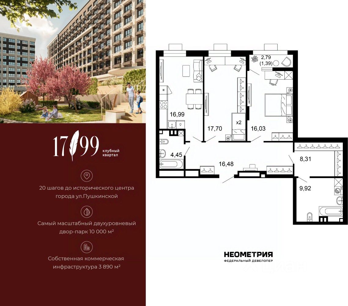 Продается квартира в клубном квартале "1799". Это истинный бизнес-класс в историческом центре Ростова. Особое сочетание уникальной локации и среды, где хочется создавать ту жизнь, которая подходит вам. Где каждое мгновение становится частью семейной коллекции лучших моментов.