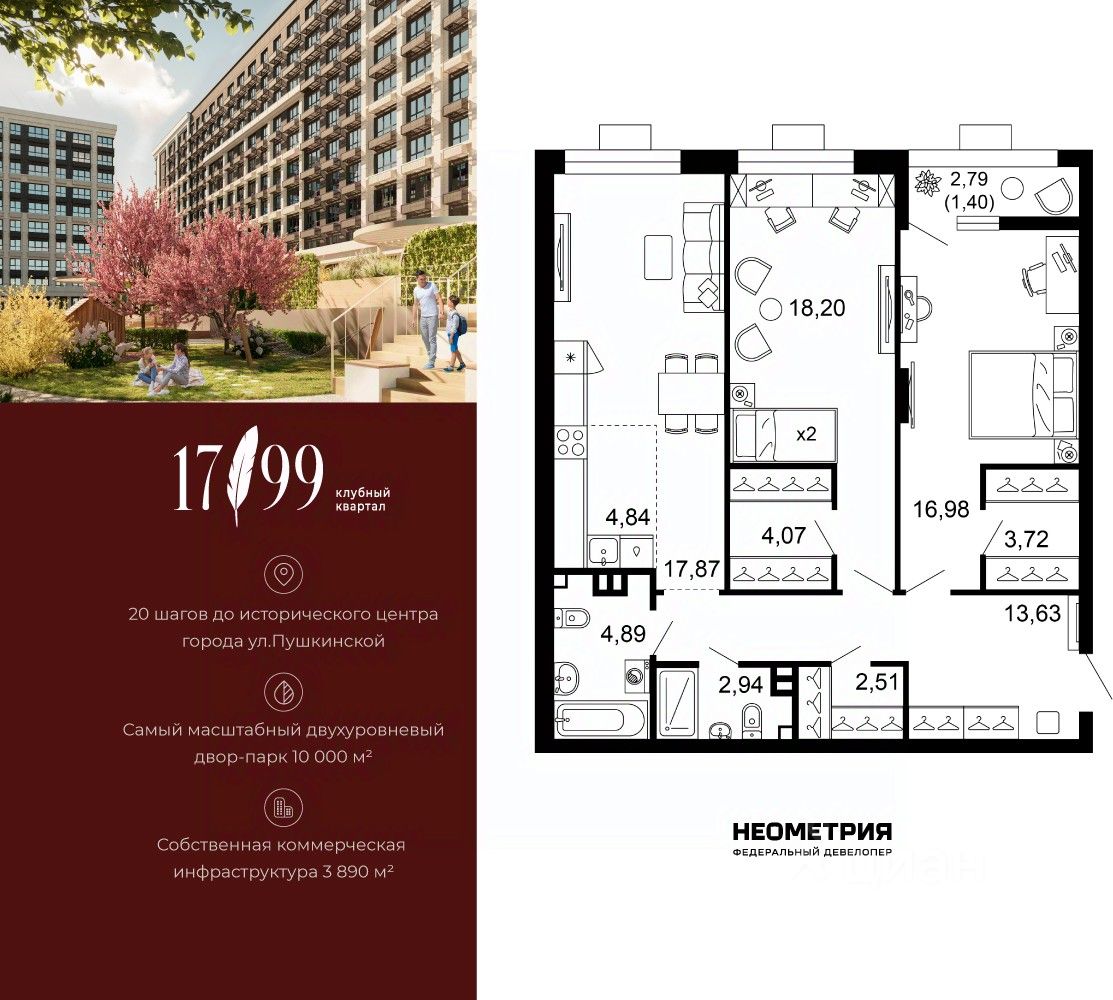Продается квартира в клубном квартале "1799". Это истинный бизнес-класс в историческом центре Ростова. Особое сочетание уникальной локации и среды, где хочется создавать ту жизнь, которая подходит вам. Где каждое мгновение становится частью семейной коллекции лучших моментов.