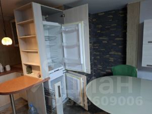 В комнате - студии установлена электрическая плита, большой двухкамерный холодильник с отдельным выдвижным ящиком для напитков (встроен в кухню и почти незаметен), диван,