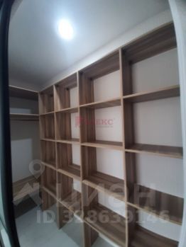 Первая спальня имеет собственную обустроенную гардеробную с освещением, кровать, 2 прикроватные тумбы.