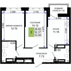 Продается 2-комн. квартира, площадью 53.69 кв.м. Возможен вариант покупки с использованием ипотечных средств.