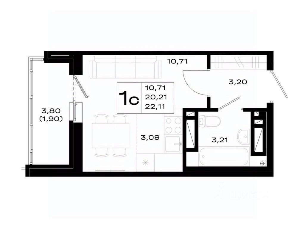 Общая площадь22,11 м²