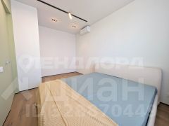 Атмосферу вашей спальни определяет панорамное остекление, открывающее вид на городские огни. Здесь тихо и спокойно, а все ваши вещи аккуратно разложены в продуманной системе хранения гардеробной, которая ждет своего нового владельца.