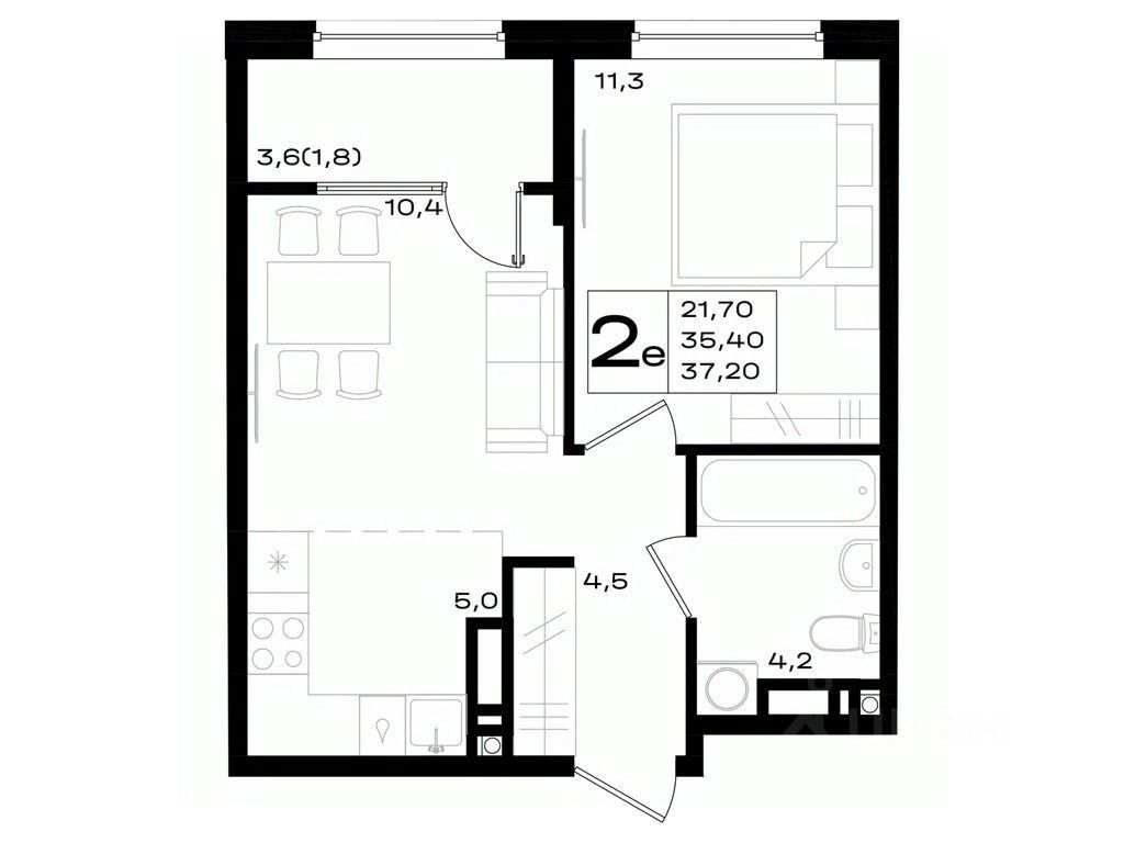 Общая площадь37,2 м²