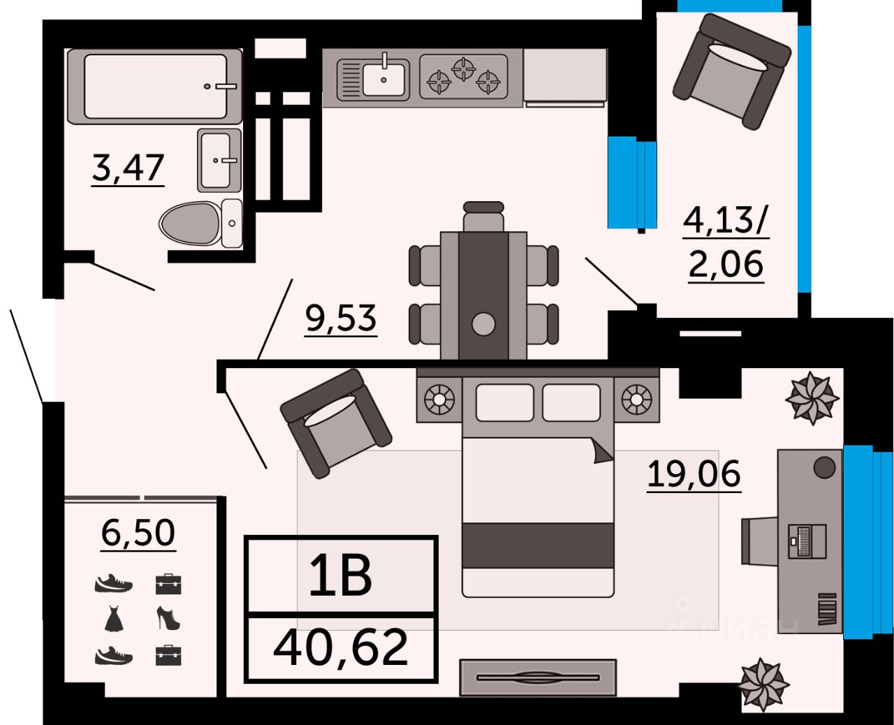 В продаже однокомнатная квартира в новостройке, в стройварианте. Лучшее решение для молодой семьи, под сдачу или для инвестиций. Планировка квадратной формы, в которой есть всё необходимое для комфортной жизни. Просторная прихожая, комната с углублением, которое можно использовать как место для хранения вещей. Благодаря классическому размещению помещений вы можете воплотить в жизнь любые дизайнерские решения. Успейте забронировать квартиру напрямую от застройщика.