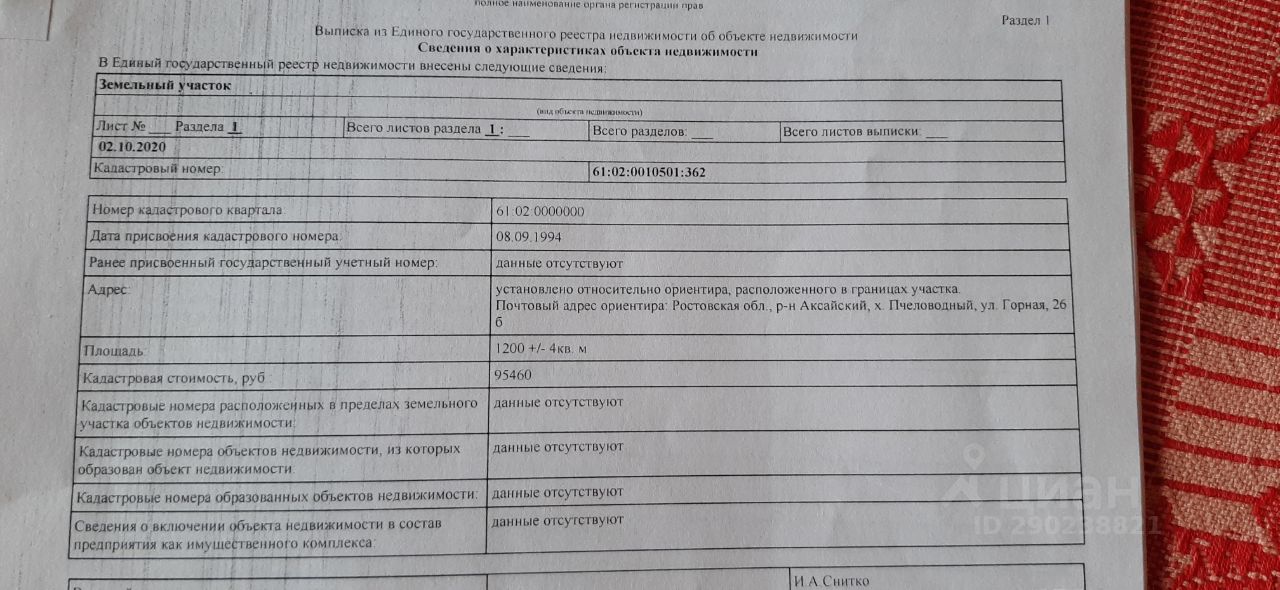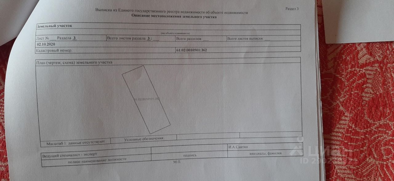 Кадастровый номер участка 61:02:0010501:*** указал продавец