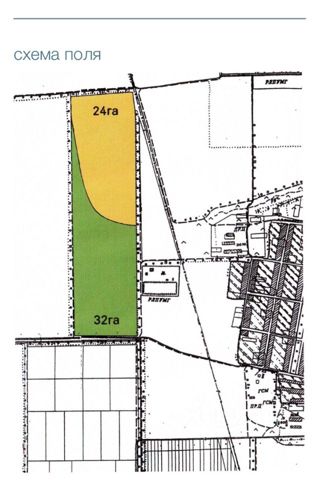 Размеры участка: фасад 400 метров, длина 1440 метров, участок с трёх сторон кроме фасада окружён лесопосадками.