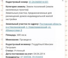 Кадастровый номер участка 61:26:0600016:*** указал продавец