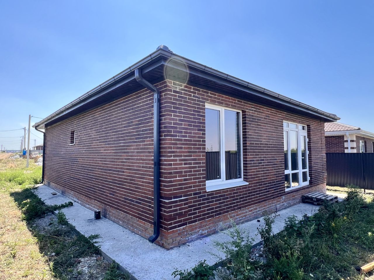 Есть все коммуникации: вода, свет. Двор ровный, хороший въезд для машин и большая территория для ландшафтного дизайна. В шаговой доступности вся необходимая инфраструктура , школа, магазины и транспорт, широкие подъездные дороги,.