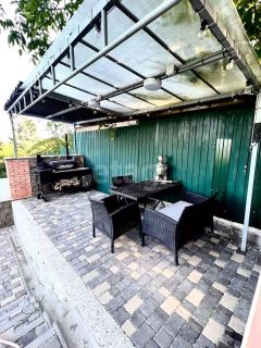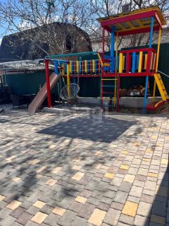 Красивый, полностью благоустроенный двор, участок выходит на 2 улицы, имеется два въезда с установленными ролл-воротами. Во дворе парковочные места на 5 машин, газонная трава, автополив. Молодые фруктовые деревья и голубая ель, мангальная зона, детская площадка.