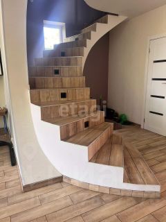 На первом этаже располагается кухня-столовая. Вся встраиваемая техника (духовой шкаф, микроволновка, посудомойка, варочная панель) премиального сегмента фирмы bosh. На кухне большой стол от Анны Потаповой. Гостиная, сан узел с душем, прихожая.